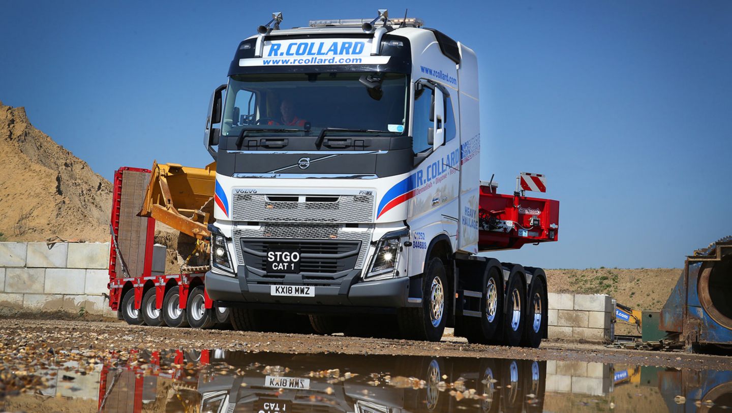 "The FH16-750 is the prime mover for all our heavy work," reports Robert Collard, Managing Director at R. Collard. "I have a Volvo 750 digger as well and we have spec'd up our trailer to move that. The other tractor units work on either waste haulage, aggregates or double up as low loaders with step frame trailers, depending on workloads. We have some other marques in the fleet and buy second-hand as well as new. We have looked at alternative manufacturers when there's been a shortage of supply, but we have an 80% Volvo fleet."