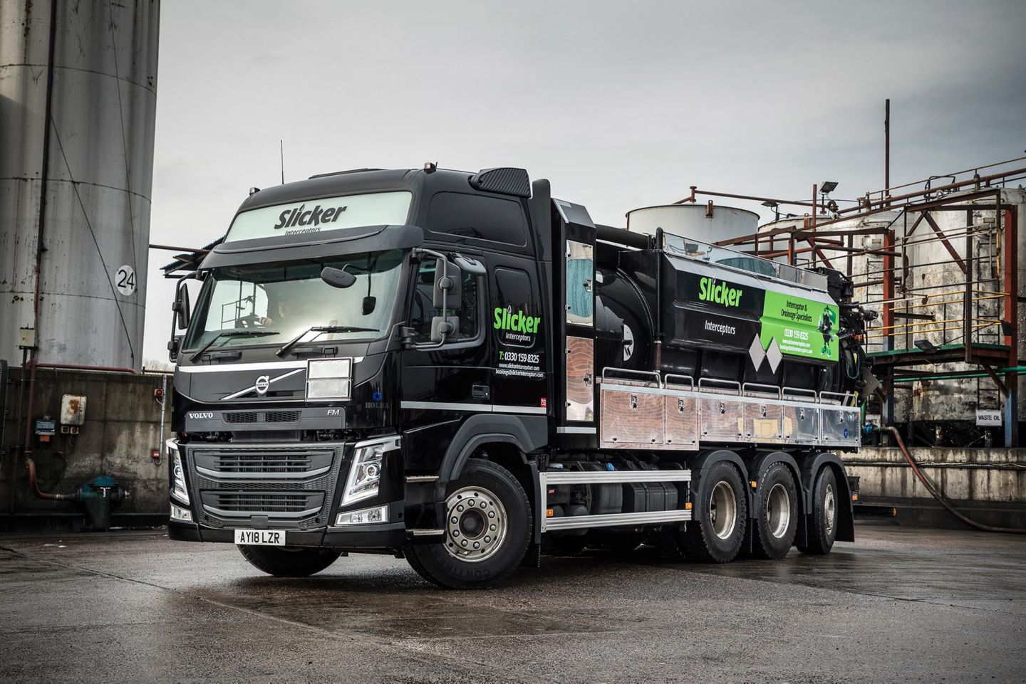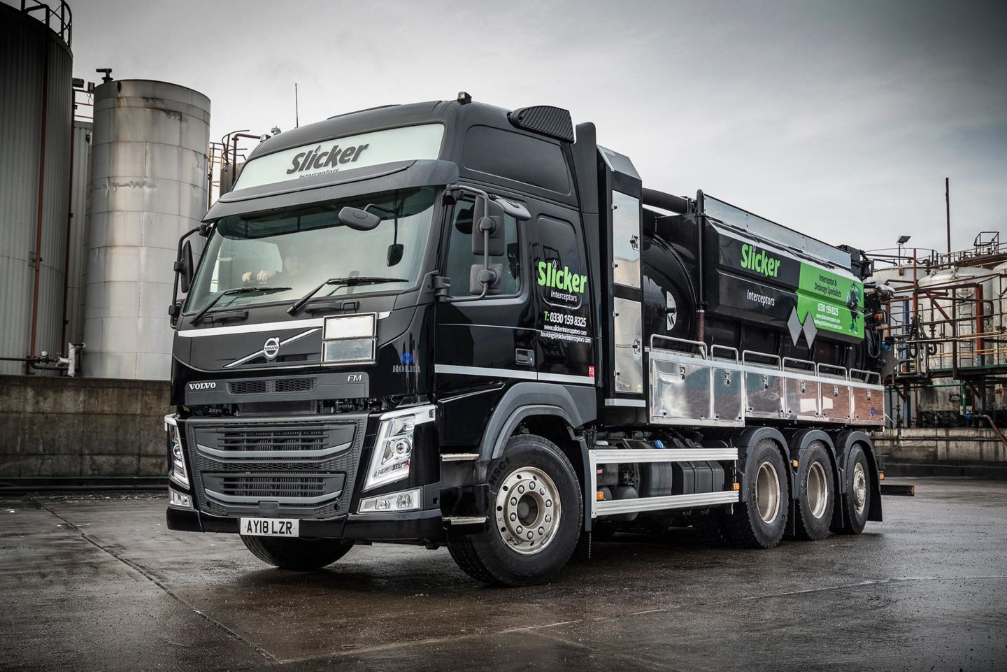 "We will use the new FM Tridems for collecting waste sludges and sediment from oil and water separators," reports Mark Olpin, Managing Director at Slicker Recycling Ltd. adding, "The capacity and weight capability of Volvo's chassis makes it ideal for interceptor cleaning."